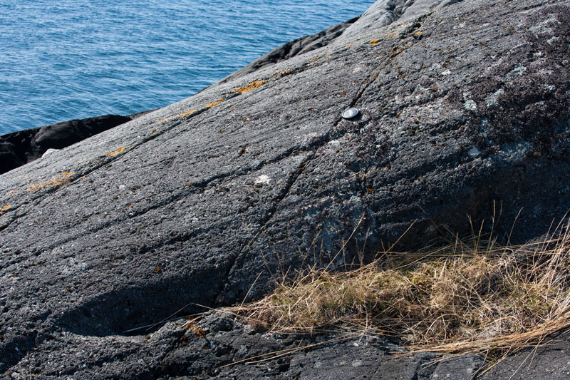 Stripene i berggrunnen kalles skuringsstriper (se bildet under). Disse ble dannet av innlandsisen siste istid. Bergfragmenter frosset i bunnen av isbreen ble skurt bortover berget, slik at breen virket som et gigantisk sandpapir, og trykket mot underlaget var ekstremt stort. Dette kalles gjerne isskuring.