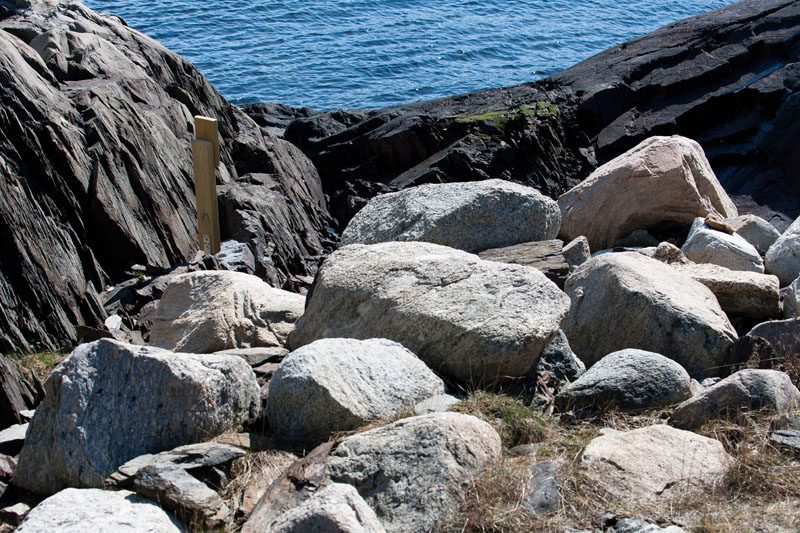I området der bildet er tatt finner du mange forskjellige bergarter, både i fast fjell, og som fragmenter i steiner og blokker.