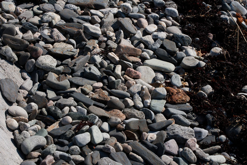 Steinene er så godt rundet fordi bølgene har beveget de fram og tilbake slik at kornene har blitt slipt og rundet mot hverandre. De mykeste bergartsfragmentene er sannsynligvis knust helt ned. Du kan jo sjekke om du finner eksempler på mykere skiferbergarter langs stranda.